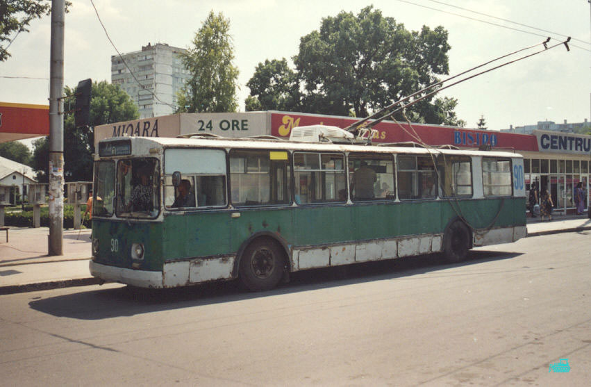 Оба сочлененных ЗИУ в Бэлцах переделаны в двухосные. Троллейбус 150 на улице Штефан Чел Маре, 13.7.2002.  |