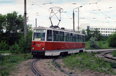 После 12-летнего перерыва в январе 1991 г. в Ленинское депо Харькова снова поступили вагоны КТМ-5 (теперь уже 71-605А). Они получили номера начиная с 880 назад, то есть 863-880. В феврале следовали вагоны 861 и 862. Фото: вагон 862 (зав. 706) на 11-м маршруте; АО, 2.10.1998. |
