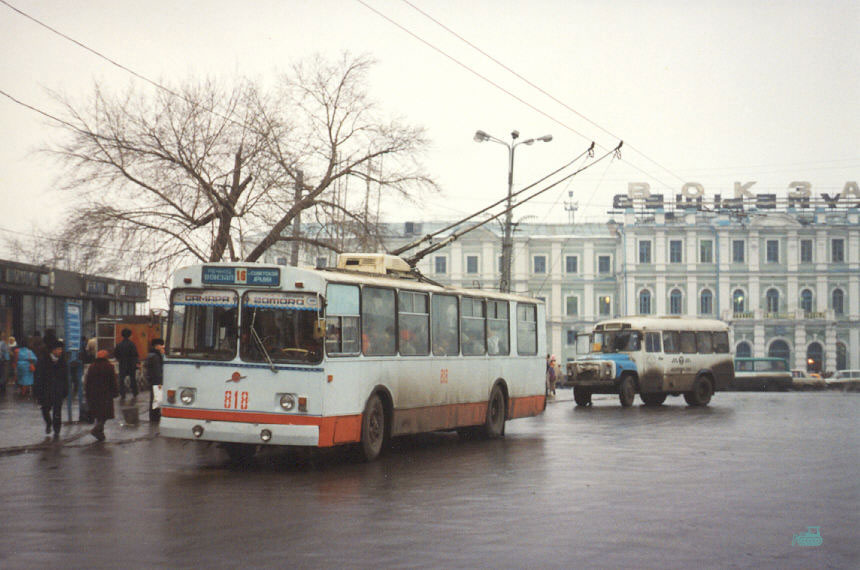 Троллейбус 818 на 16-м маршруте на Привокзальной площади. Фото АО, 10.11.1991. |